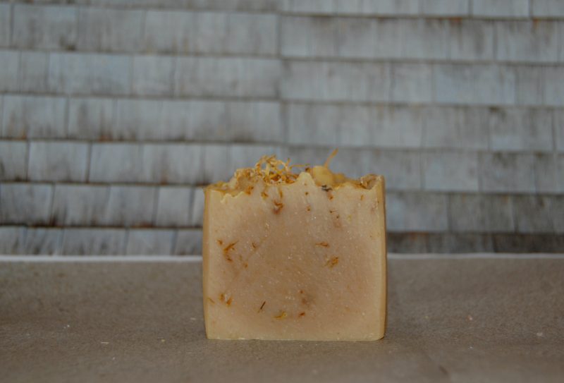 Ingredients: Honeybush Mandarin Orange herbal tea, Olive Oil, Coconut Oil, Avocado Oil, Palm Oil, Sodium Hydroxide, Shea Butter, Castor Oil, essential oil blend, Calendula Petals, ground Orange Peels,