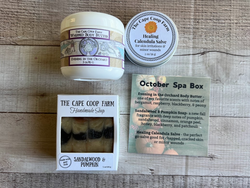 Offering the convenience of auto-billing and the security of no obligation, cancel at any time.  Each monthly crate will have a retail value of $26-$30.  The selections & scents will change up each month, a mix of Cape Coop year round favorites and seasonal scent-sations!