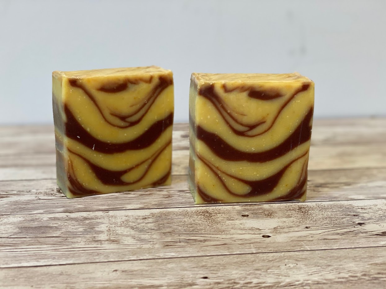 “Chocolate Orange”soap combines the bright scent of orange essential oil with deep, rich chocolate from organic cocoa butter – so good!