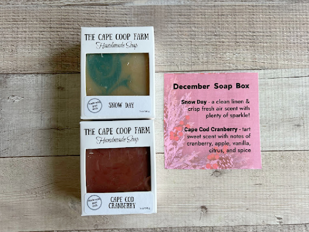 Our soap subscription service will deliver two full size, 5 oz handmade soaps to your door every month, offering the convenience of auto-billing and the security of no obligation, cancel at any time. You will get two different scents per month. The scents will change each month, a mix of Cape Coop year round favorites and seasonal scent-sations!